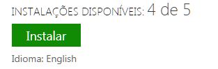 (Logo após eu ter feito a instalação da edição Home Premium no meu pc, uma instalação já foi “debitada” da minha conta no site – officepreview.microsoft.com, restando somente 4 instalações).